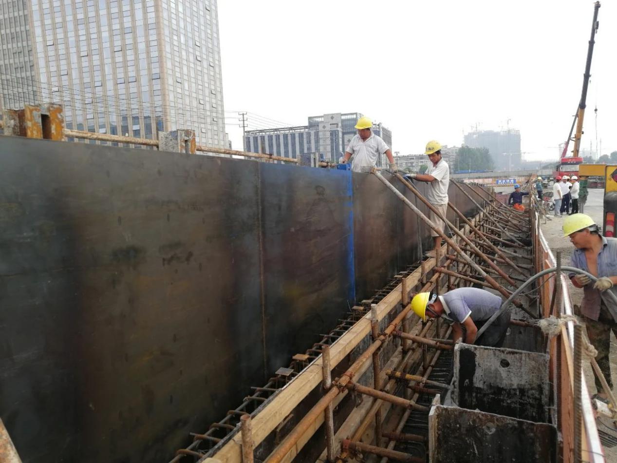 為了確保首段側(cè)墻順利澆筑,澆筑前,項目部多次邀請設(shè)計方、建設(shè)方、施工方、監(jiān)理方相關(guān)人員對側(cè)墻預埋件及防水體系進行研討優(yōu)化。澆筑中,嚴格控制混凝土振搗質(zhì)量、鋼筋加工及安裝施工質(zhì)量,強化安全措施,加強現(xiàn)場管理。同時針對側(cè)墻較高的特點,提前支好預制的鋼側(cè)模,進行分層澆筑,確保施工質(zhì)量。