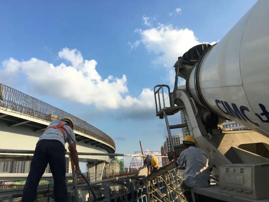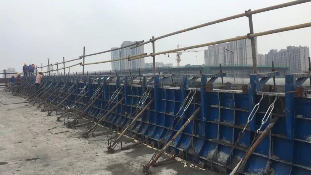 自防撞護欄施工以來,項目部多措并舉,綜合管控現(xiàn)場施工安全及質(zhì)量,保證橋面系及防撞護欄施工穩(wěn)步推進。面對防撞護欄施工圓曲線半徑較小、鋼筋預埋準確度控制難度大、鋼筋線型調(diào)整難度大等難題,從測量放線、立模校正到澆筑砼,全程設專人盯控,嚴格“三檢”制度,堅持“樣板引路”,抓好質(zhì)量管控。同時,多次組織召開防撞護欄“回頭看”等專題會議,不斷總結(jié)經(jīng)驗、優(yōu)化施工方案,平穩(wěn)有序推進施工進度。