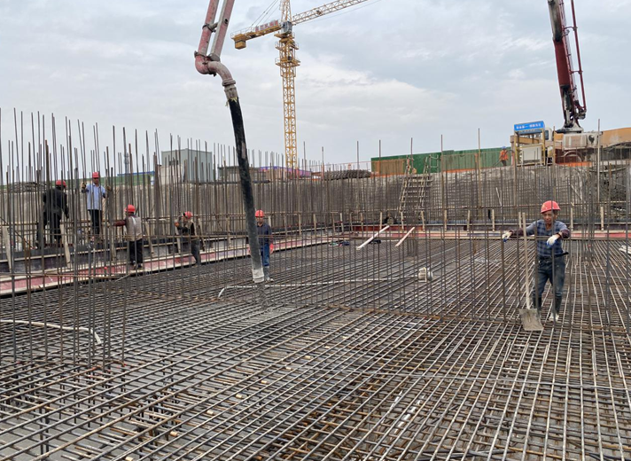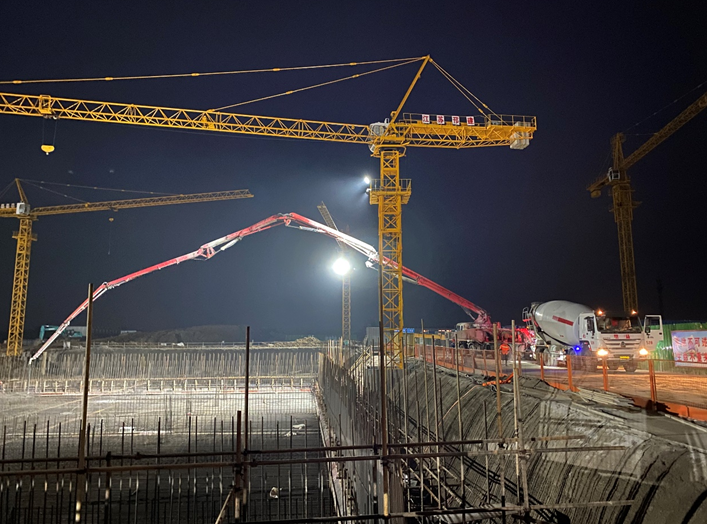 本次澆筑底板的AAO生化池池體規(guī)模大,澆筑難度系數(shù)高。為確保澆筑工作順利進(jìn)行,澆筑前參建各方多次召開(kāi)施工專(zhuān)題會(huì)議。針對(duì)此次混凝土的澆筑方法、澆筑注意事項(xiàng)、混凝土強(qiáng)度及配合比要求等編制了詳細(xì)的施工方案,并對(duì)施工過(guò)程中可能出現(xiàn)的問(wèn)題制定了應(yīng)急預(yù)案。澆筑期間,管理人員實(shí)行“兩班倒”,全程監(jiān)督旁站,嚴(yán)控澆筑質(zhì)量。最終,全體人員克服了場(chǎng)地受限、夜間施工道路濕滑等重重困難,保安全優(yōu)質(zhì)量,AAO生化池一號(hào)片區(qū)混凝土底板澆筑工作按既定工期順利完成。