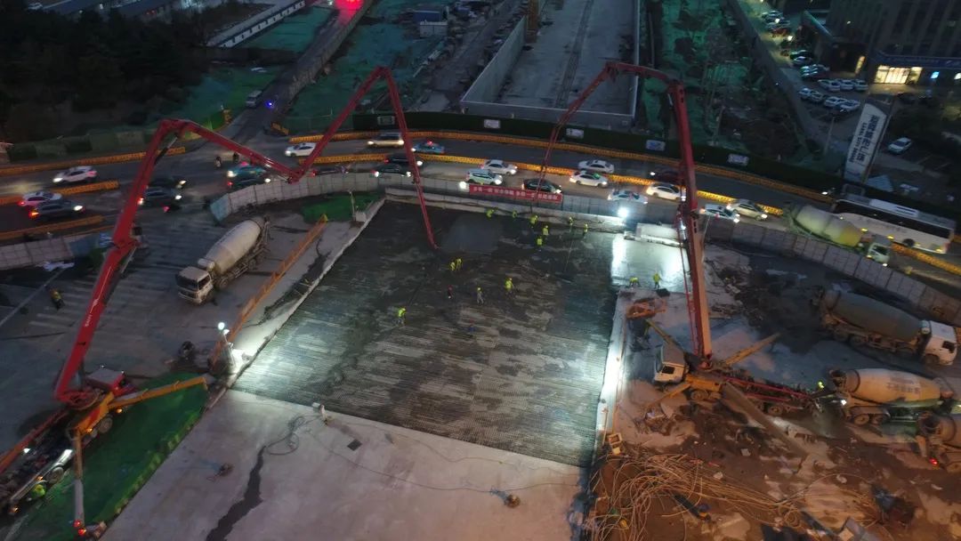 1月3日22:00,經(jīng)過近13個小時的連續(xù)作業(yè),運河路文昌路隧道最后一塊頂板順利澆筑,標志著隧道主體結(jié)構(gòu)全面完工!