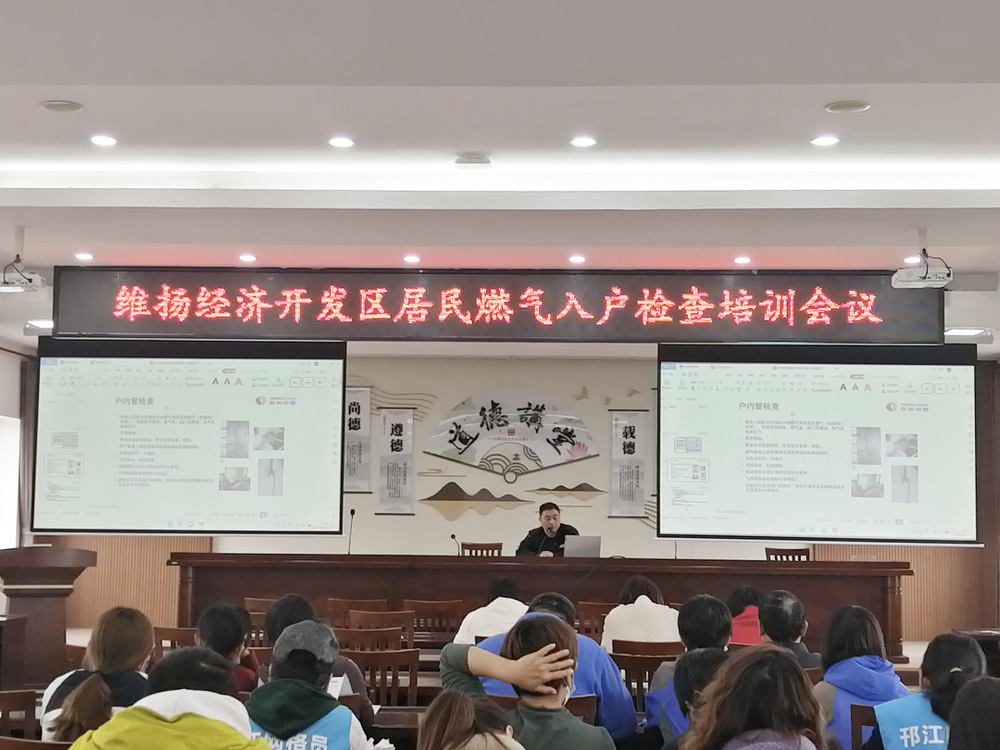 在朱塘社區(qū)會(huì)議室,來(lái)自維揚(yáng)開(kāi)發(fā)區(qū)所轄的社區(qū)網(wǎng)格員和樓棟長(zhǎng)共50多人參加活動(dòng)。藍(lán)焰融惠志愿者通過(guò)講解PPT、播放宣傳片的形式,從“如何進(jìn)行燃?xì)獍踩詸z、用氣安全隱患分析、燃?xì)庑孤┡c事故發(fā)生的關(guān)聯(lián)度、用氣存在的不安全行為、燃?xì)庑孤?yīng)急處置措施”等方面進(jìn)行了深入淺出的宣講。志愿者現(xiàn)場(chǎng)就大家提出的有關(guān)問(wèn)題進(jìn)行了答疑解惑,同時(shí)就附近商戶(hù)普遍關(guān)注的“瓶改管”工作做出了相應(yīng)的宣傳和積極的回應(yīng)。