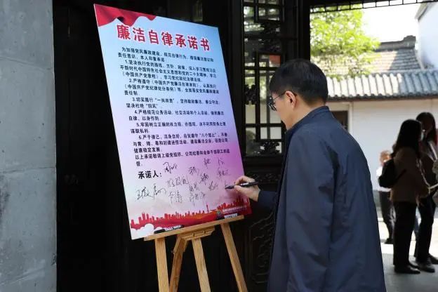 在斗野亭的長(zhǎng)廊,大家分享了廉政書籍,互贈(zèng)了“廉”花,進(jìn)行了廉政交流,簽署了廉潔自律承諾書。大家紛紛表示:“在今后的工作生活中,要一身正氣、堅(jiān)守本心;要頭頂理想、胸懷信仰;要主動(dòng)擔(dān)當(dāng)、知行合一?!?/p>