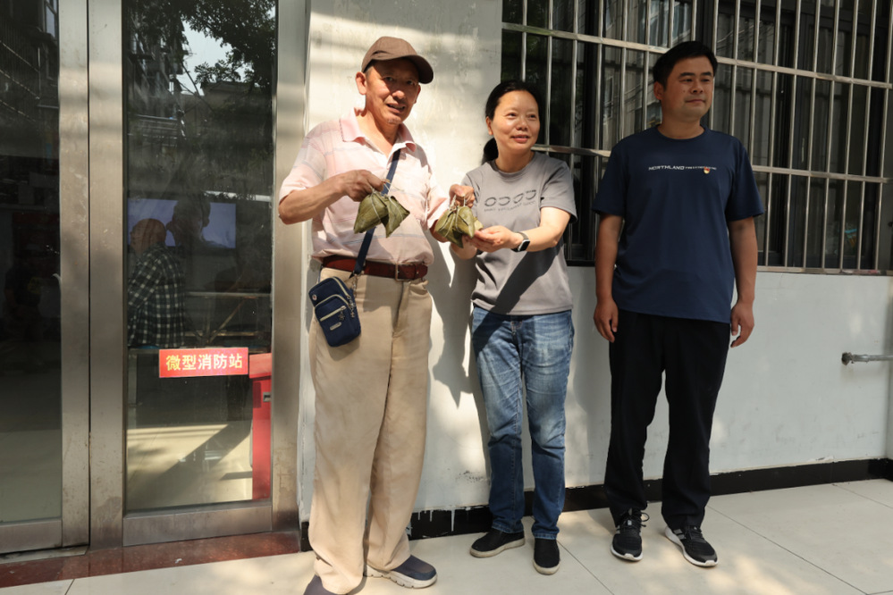 第三黨支部志愿者和社區(qū)工作人員分為兩組,將蒸煮好的近200個粽子分送到沙口社區(qū)困難家庭、獨居老人、重度殘疾人及孤寡老人家中,為他們送上慰問品及誠摯的節(jié)日祝福。