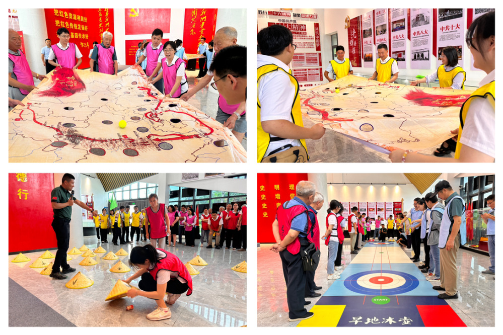 參觀結(jié)束后,現(xiàn)場還組織開展了紅色拓展活動。黨員們快速組建隊伍,在紅色拓展活動中拉進彼此的距離,在專業(yè)教官的指導(dǎo)下,各隊員相互配合、突破自我,以飽滿的熱情和勇往直前的精神完成了“重走長征路”、“南泥灣大豐收”、“旱地冰壺”等拓展項目。隊員們在活動中打開自己,相互交流,營造了融洽的團隊氛圍,充分展現(xiàn)了黨員干部拼搏進取、團結(jié)協(xié)作的良好精神風(fēng)貌。