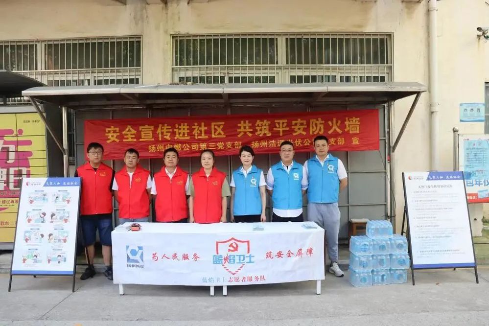 為充分發(fā)揮黨組織戰(zhàn)斗堡壘和黨員先鋒模范作用,進一步普及用電、用氣安全知識,7月24日上午,潔源光伏公司黨支部聯(lián)合揚州中燃公司第三黨支部前往石橋社區(qū)嘉豐苑小區(qū)開展“安全宣傳進社區(qū),共筑平安防火墻”志愿服務活動。