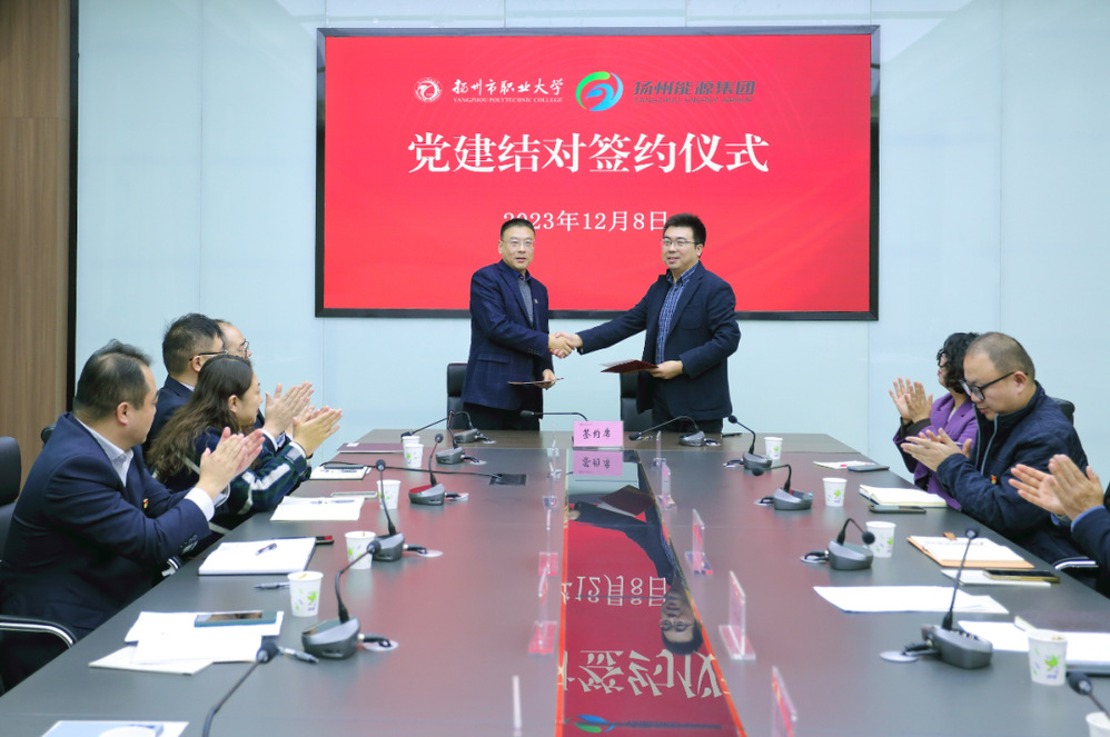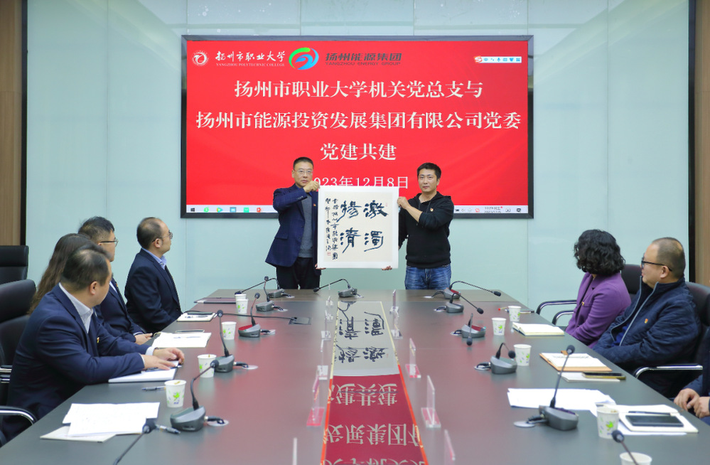 為深入貫徹落實(shí)黨的二十大精神,充分發(fā)揮黨建的核心引領(lǐng)作用,構(gòu)建結(jié)對幫帶、雙向促進(jìn)、共同提高的黨建新格局,12月8日下午,揚(yáng)州能源集團(tuán)黨委與揚(yáng)州職大黨總支開展結(jié)對共建活動(dòng)。揚(yáng)州職大機(jī)關(guān)黨總支書記仇華興,能源集團(tuán)黨委委員、紀(jì)委書記王亭,能源集團(tuán)副總經(jīng)理余國云和雙方黨員代表參加活動(dòng)。