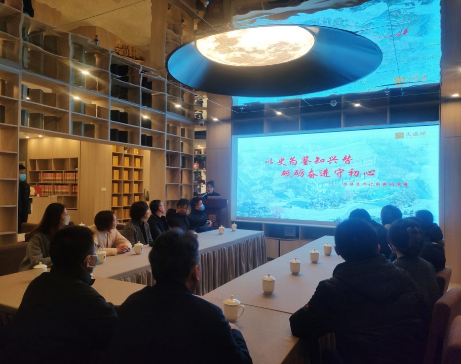 在講解員的帶領(lǐng)下,大家參觀了一樓歷史文化展陳區(qū),通過“依靠學(xué)習(xí),走向未來”主題學(xué)習(xí)平臺,學(xué)習(xí)了“信念篇”“勸學(xué)篇”“修身篇”“齊家篇”“民本篇”“勤廉篇”六個篇章的相關(guān)內(nèi)容,學(xué)習(xí)感悟習(xí)近平總書記在系列重要講話中所引用的《四庫全書》中的經(jīng)典語句,深刻領(lǐng)悟習(xí)近平總書記關(guān)于黨風(fēng)廉政建設(shè)和反腐敗斗爭的重要論述。隨后,文匯閣青年黨員以《以史為鑒知興替 砥礪奮進守初心》為題為大家上了一堂生動的專題黨課。