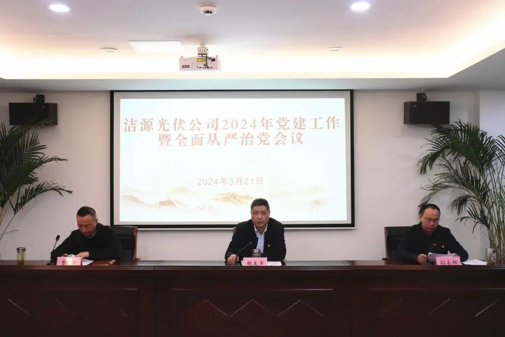3月21日上午,潔源光伏公司召開(kāi)2024年黨建工作暨全面從嚴(yán)治黨會(huì)議,全體黨員、干部參加會(huì)議。