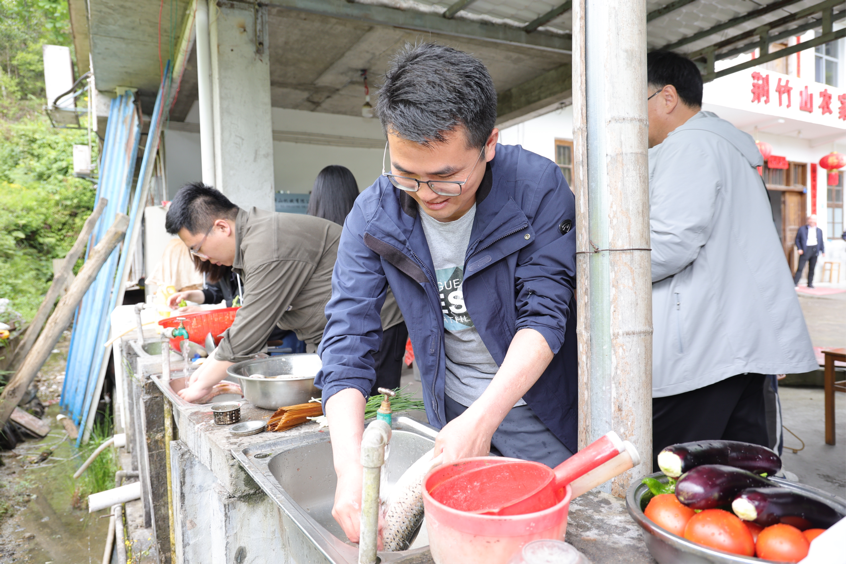 在紅色拓展環(huán)節(jié),全體學(xué)員前往毛澤東宣布“三大紀(jì)律”的荊竹山開(kāi)展鐵紀(jì)教育、穿越峽谷、搶救傷員、自做紅軍餐等團(tuán)隊(duì)挑戰(zhàn)項(xiàng)目。制作紅軍餐時(shí),學(xué)員們利用準(zhǔn)備好的食材,大顯身手,個(gè)個(gè)化身做飯能手。劈柴、生火、洗菜、擇菜、切菜、擺盤(pán),大家分工合作,每一個(gè)環(huán)節(jié)都配合默契,每一個(gè)步驟都井然有序。用著大鍋灶,燒著柴火飯,一道道色香味俱全的佳肴被端上桌,得到了大家的一致好評(píng)。通過(guò)多個(gè)團(tuán)隊(duì)合作項(xiàng)目,既增強(qiáng)了學(xué)員們的團(tuán)隊(duì)協(xié)作能力,又展現(xiàn)了學(xué)員們朝氣蓬勃的精神風(fēng)貌和銳意進(jìn)取的昂揚(yáng)斗志。