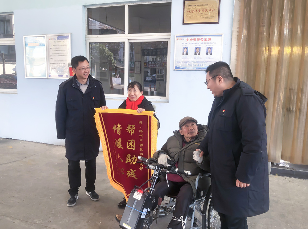 近日,連福社區(qū)徐鴻林和愛人將一面寫有“幫困助殘 情暖人心”字樣的錦旗送到揚州中燃公司第四黨支部,以表達(dá)對藍(lán)焰老兵志愿者對其日常生活的照料。