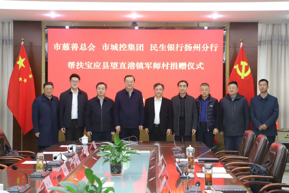 市政協(xié)主席、市慈善總會會長陳揚(yáng),集團(tuán)黨委書記、董事長張思忠,民生銀行揚(yáng)州分行黨委書記、行長杜楊坤,市慈善總會副會長趙振東,寶應(yīng)縣委書記張小輝,寶應(yīng)縣人大常委會主任、慈善總會會長陳金榮等出席捐贈儀式。