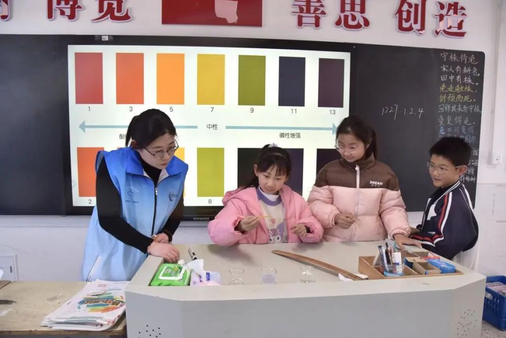 活動(dòng)現(xiàn)場,志愿者通過“理論+實(shí)踐”雙線并行的方式,向?qū)W生們普及水資源知識。理論環(huán)節(jié)中,志愿者以通俗易懂的語言講解了水資源的稀缺性、日常節(jié)水技巧以及長江流域水生態(tài)保護(hù)的重要性。實(shí)踐環(huán)節(jié)則設(shè)置“水的酸堿度”小實(shí)驗(yàn),學(xué)生們在指導(dǎo)下動(dòng)手操作簡易酸堿度檢測小實(shí)驗(yàn),觀察不同酸堿度下試紙的變化,讓同學(xué)們深刻理解健康飲水的重要性。