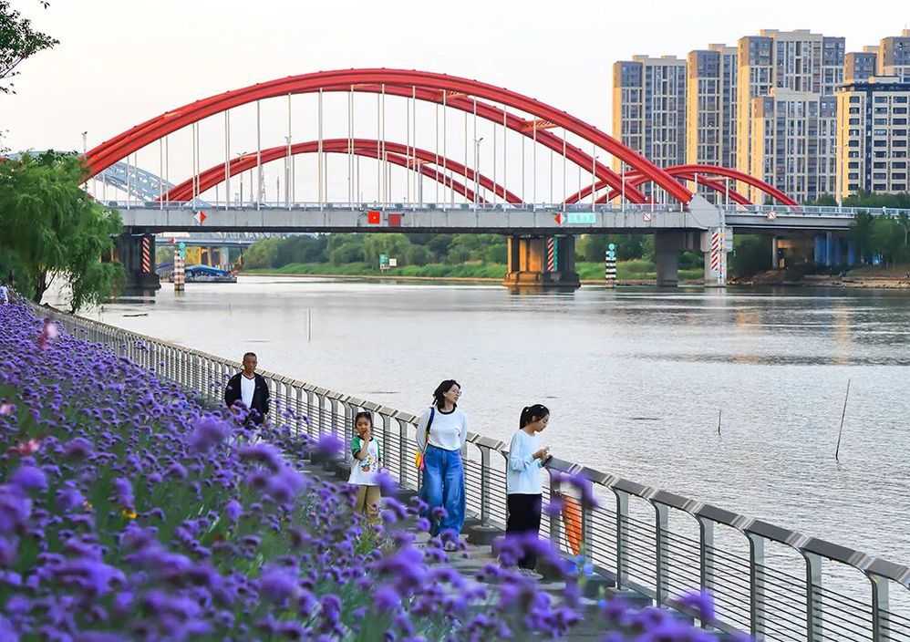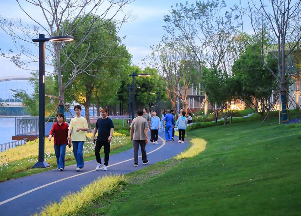 在這里,水清、岸綠、景美,市民和游客置身于流動的生態(tài)畫卷,休閑娛樂、放飛自我、流連忘返,共享綠意盎然的濱水步道,感受歷史與現(xiàn)代的交融、自然與人文的共鳴。